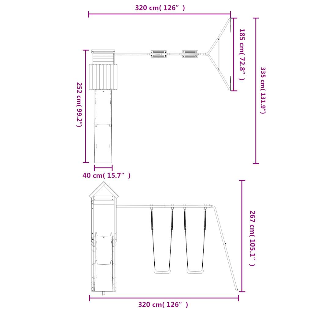 - Gesamtabmessungen: 320 x 335 x 267 cm (L x B x H)