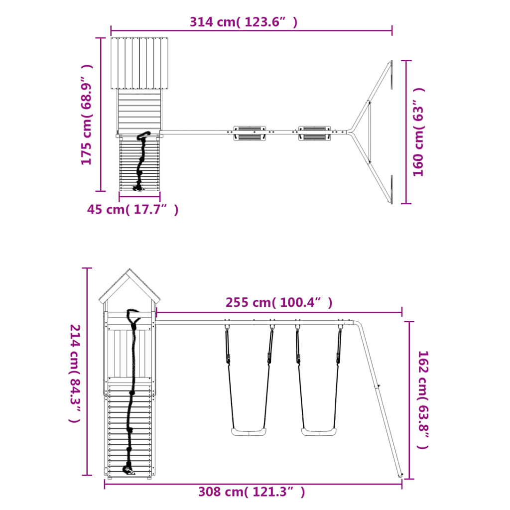 - Abmessungen der Kletterwand: 45 x 5 x 108 cm (B x T x H)
