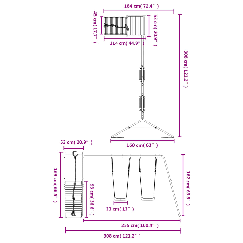 Achtung: Nur für den Hausgebrauch; für den Außenbereich geeignet. Nicht geeignet für Kinder unter 3 Jahren. Empfohlenes Benutzeralter: 3-8 Jahre. Maximales Gewicht pro Benutzer: 45 kg. Hinweis: Das Produkt muss zur Verringerung der Kippgefahr verankert werden; Anker sind nicht im Lieferumfang enthalten. Um die Montage so einfach wie möglich zu gestalten, wird jedes Produkt mit einer Anleitung geliefert.