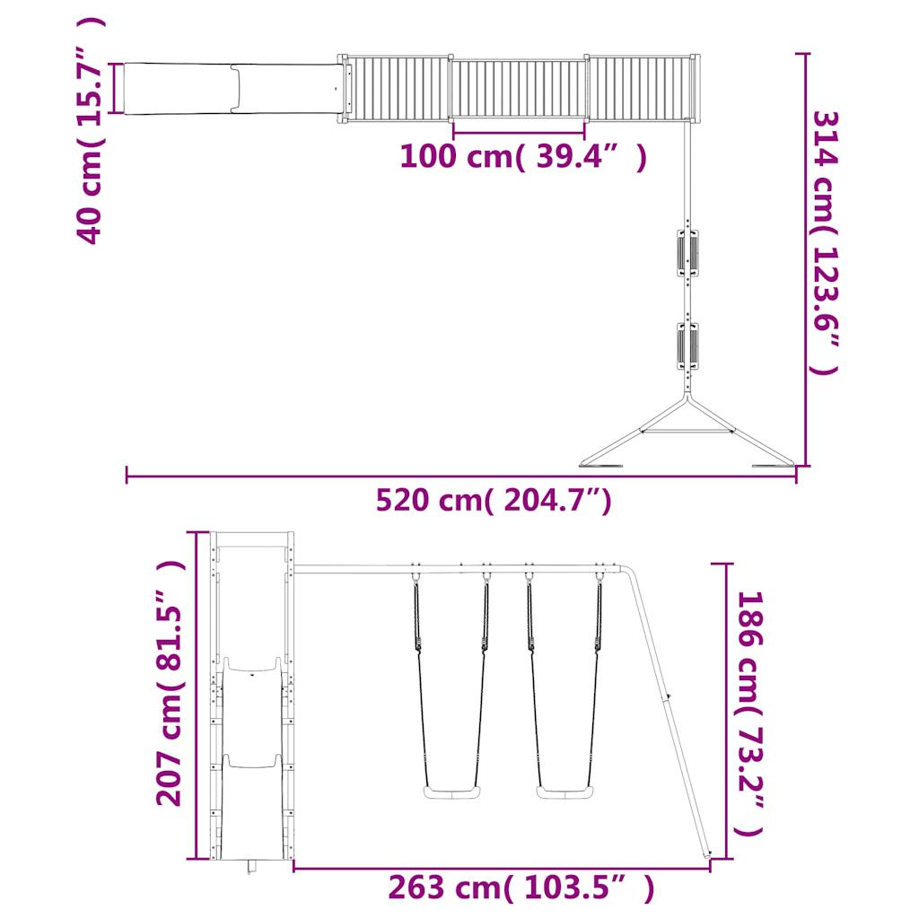 Der robuste und stabile Rahmen sorgt für Sicherheit und Langlebigkeit. Das A-förmige Gestell gewährleistet zusätzliche Stabilität, insbesondere bei der Benutzung der Schaukeln. Mit einer Plattformhöhe von 118 cm, einer aufregenden Wellenrutsche, zwei Schaukeln und zwei Sandkästen ist dieser Spielturm perfekt ausgestattet, um viele Freunde zu unterhalten und unvergessliche Erinnerungen zu schaffen.