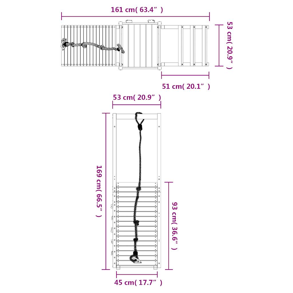 - Abmessungen der Kletterwand: 45 x 5 x 108 cm (L x B x H)