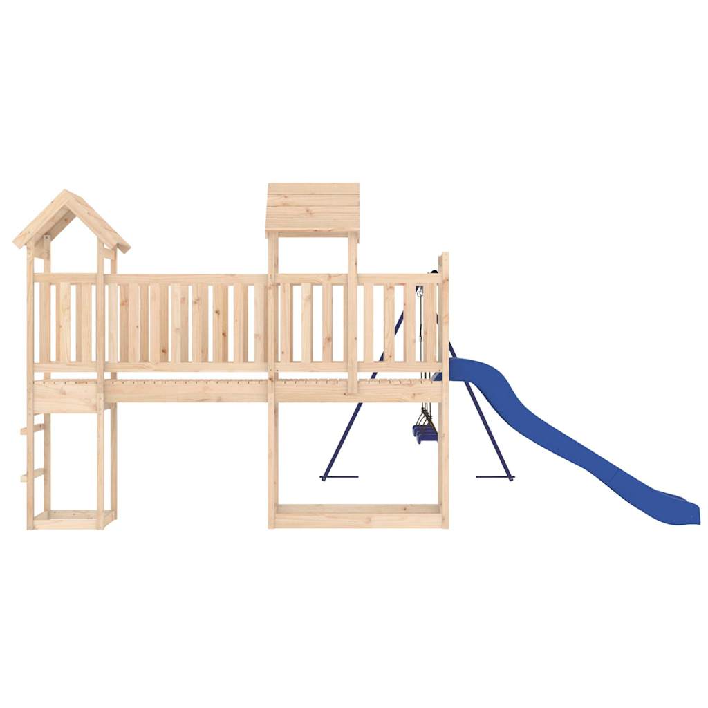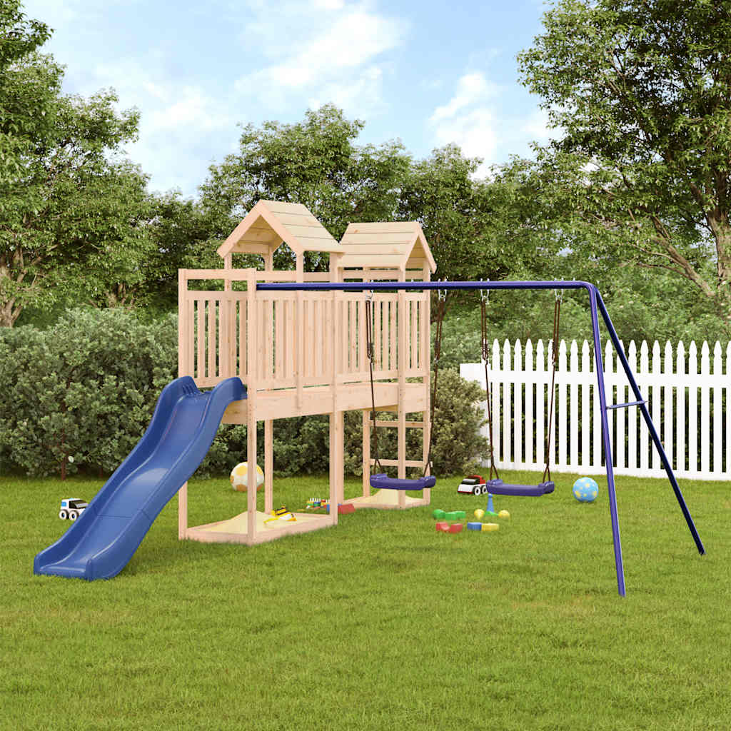 Möchtest du deinen Kindern ihren eigenen Spielplatz schenken? Dieser Spielplatz aus Holz ermöglicht fantasievolle Abenteuer im eigenen Garten! Die Spieltürme sind aus hochwertigem, massivem Holz gefertigt, darunter kesseldruckimprägniertes Kiefernholz und langlebiges Douglasienholz, die beide für ihre Witterungsbeständigkeit und Robustheit bekannt sind. Kiefernholz bietet eine schöne, rustikale Optik mit gerader Maserung und charakteristischen Aststellen, während Douglasienholz wenig Pflege benötigt und ideal für den Außenbereich ist.