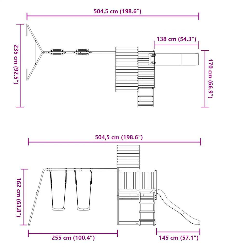 Der robuste Holzrahmen verleiht dem Spielturm Stabilität und Sicherheit. Das durchdachte Design mit einem stabilen "A"-förmigen Gestell sorgt dafür, dass die Kinderschaukel sicher genutzt werden kann. Mit einer 90 cm hohen Plattform, einer Wellenrutsche, zwei Schaukeln und einem Sandkasten bietet dieser Spielturm ein umfassendes Spielzentrum, das nicht nur für deine Kleinen, sondern auch für deren Freunde ideal ist.