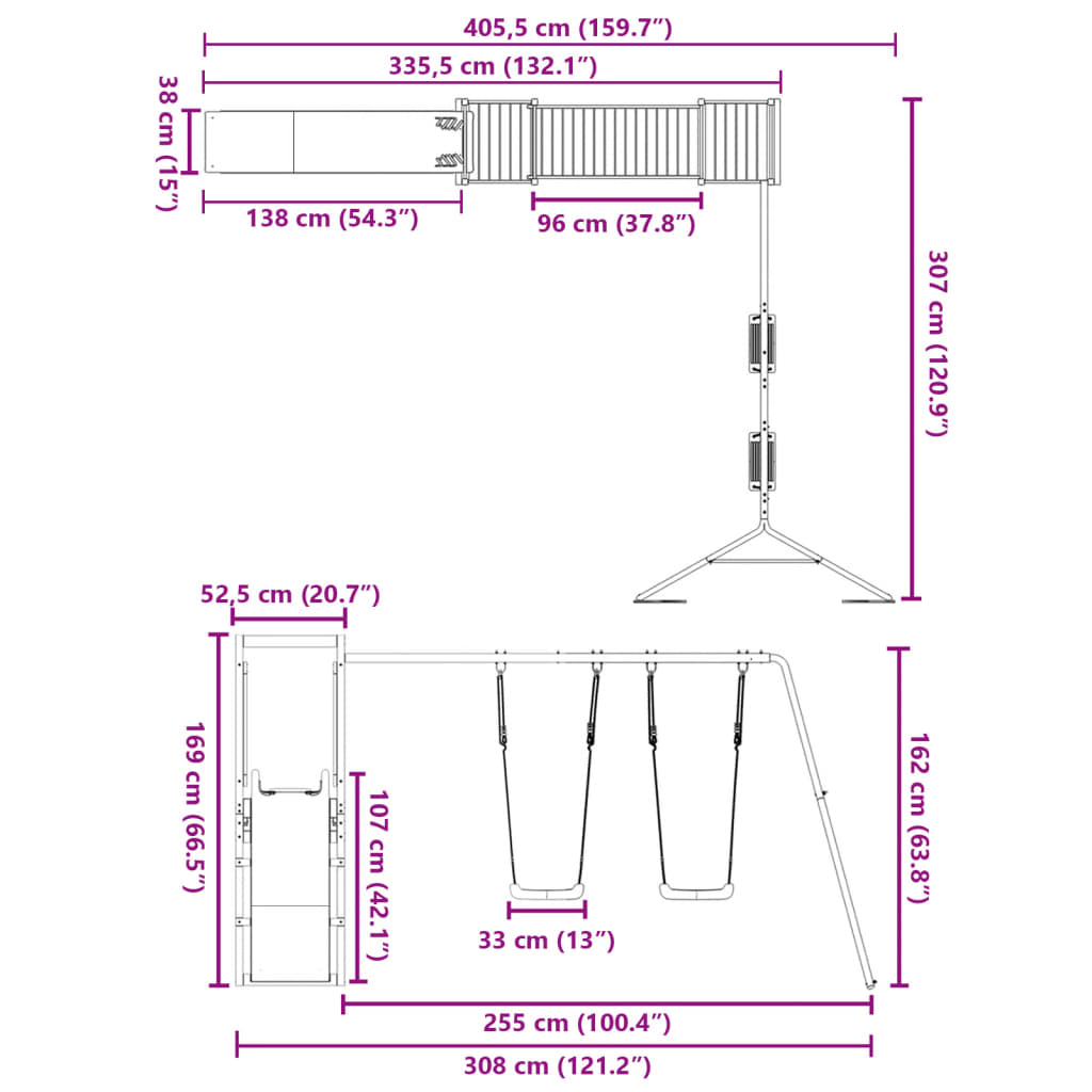 - Abmessungen der Schaukel (je): 33 x 22 x 112,5 cm (B x T x H)
