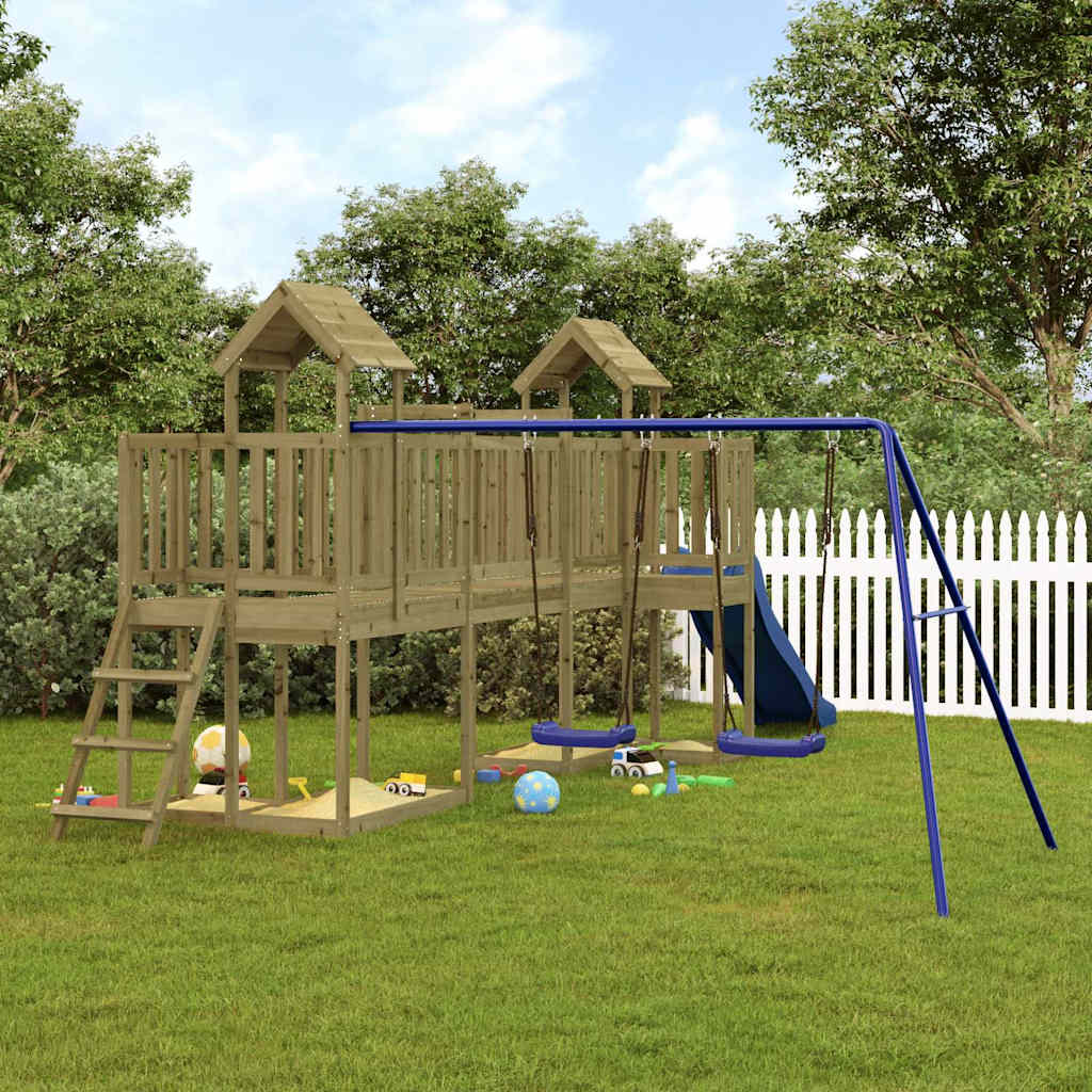 Möchtest du deinen Kindern ihren eigenen Spielplatz schenken? Dieser Spielplatz aus Holz ermöglicht fantasievolle Abenteuer im eigenen Garten! Die langlebigen Materialien, darunter unter Kesseldruck imprägniertes Kiefernholz und massives Douglasienholz, garantieren eine hohe Widerstandsfähigkeit und eine rustikale Optik. Diese Holzarten sind ideal für den Außenbereich geeignet und erfordern wenig Pflege, während sie gleichzeitig eine stabile und robuste Struktur bieten.
