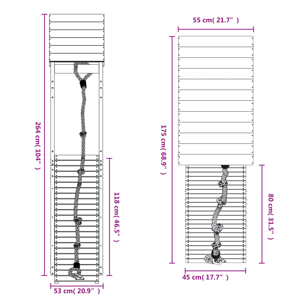 - Abmessungen Kletterwand: 45 x 5 x 147 cm (L x B x H)